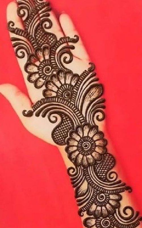These simple Arabic mehndi designs merge mixed floral designs and mandala designs. When placed on hands, they create awesome designs patterns that look complicated at first glance but are not when an knowledgeable mehndi artist draws them.