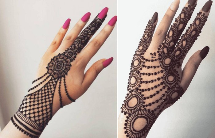 Modern designs can include unique florals with hearts, circles, crisscross patterns, peacock designs, and a cliche touch, making the outer hand look fuller and more beautiful.