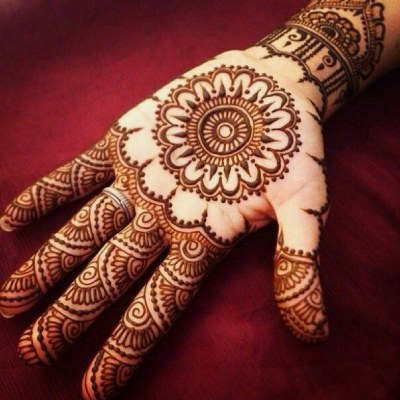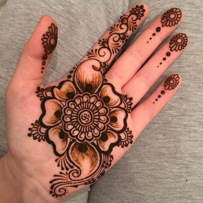 Well, the cute is a look at the design which you will choose in the first place. Most simple mehndi or henna designs start with a dot or a circle in the center of your palm. Then, keep a circle around that dot and move on with smaller curls over the circle to expand these designs to fill your palm and fingers.